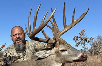 Soon into his vigil, he heard a distant crash and saw a buck at between 125 and 150 yards. When the deer began walking toward him, Kyle realized it was the wide one.