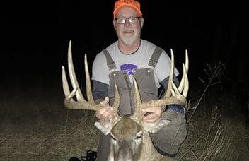 "The doe had a little doe with her," he repeated. "Of course, I thought it was a buck. It was about a 65- or 70-yard shot, and it dropped off in this ditch afterward. I didn't know if I knocked her in it, or if she just jumped."